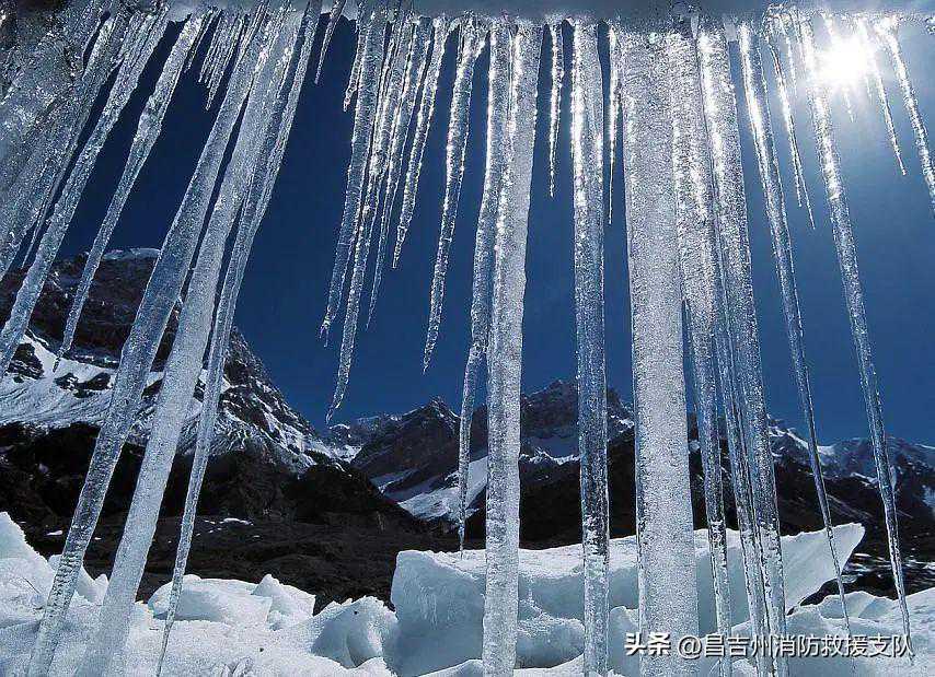 外出时,要远离房檐边等挂着冰溜子的建筑物。经过楼洞时,注意观望头顶上方是否有冰溜子,避免不小心被掉下来的冰溜子砸伤。