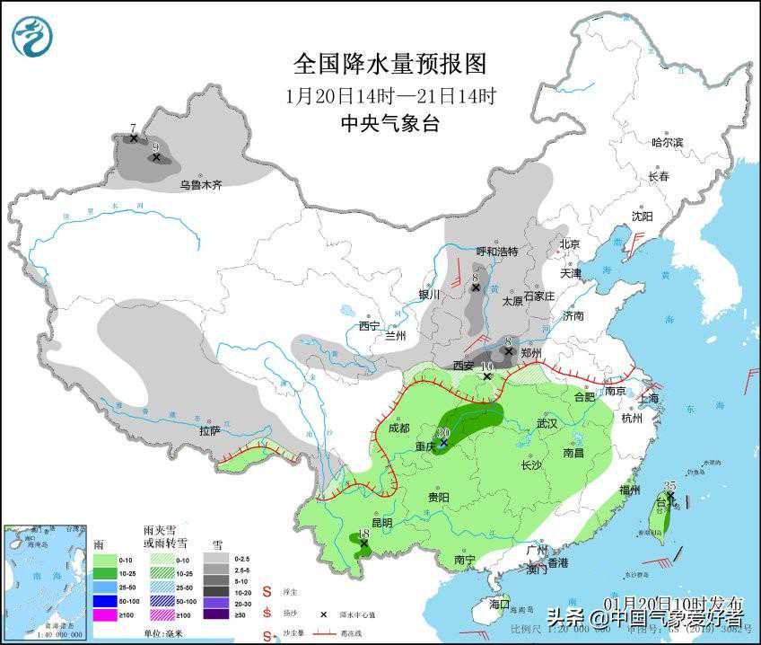而实际上,在这个1月下旬里,我国中东部的冷暖空气将持续拉锯对战,大范围雨雪天气将下个没完没了。目前的预报中,除了1月20日-24日的大范围雨雪外,1月25日以后还将有另一波大范围雨雪。从目前超级计算机的预测上看,1月25日以后我国中东部地区冷空气加强,雪线还出现了大举南下到南方地区的趋势。比如1月28日上午,雪线将在中西部一线大举深入湖南湖北重庆贵州,安徽江苏长江沿线也出现转雪迹象。这么来看的话,虽然上海发暴雪红色预警只是演练,但下周南方确实有更多降雪的苗头,并且将给正在进行中的春运带来更多麻烦。