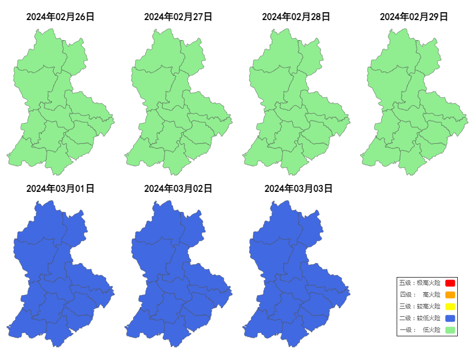 2月29日:全市森林火险气象等级为1级(低火险)。