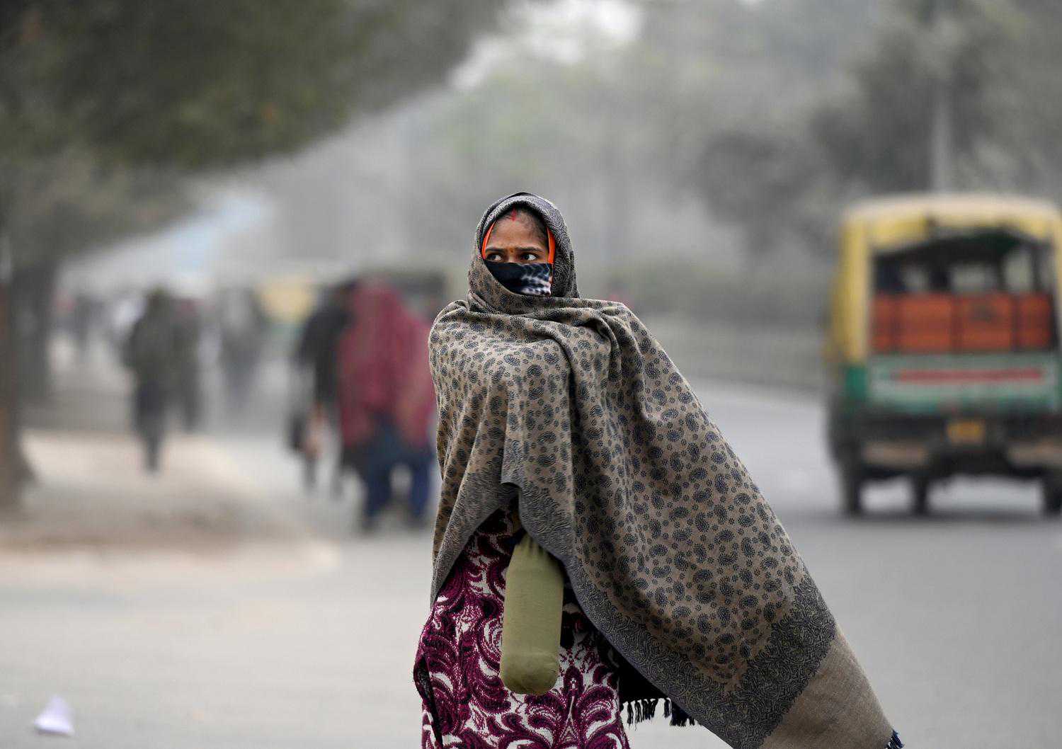 印度气温骤降,民众包裹严实出行