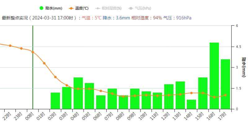 据中央气象台24小时实况曲线显示,乌鲁木齐这场降水于3月31日凌晨2时许来临,此后一直下个不停。