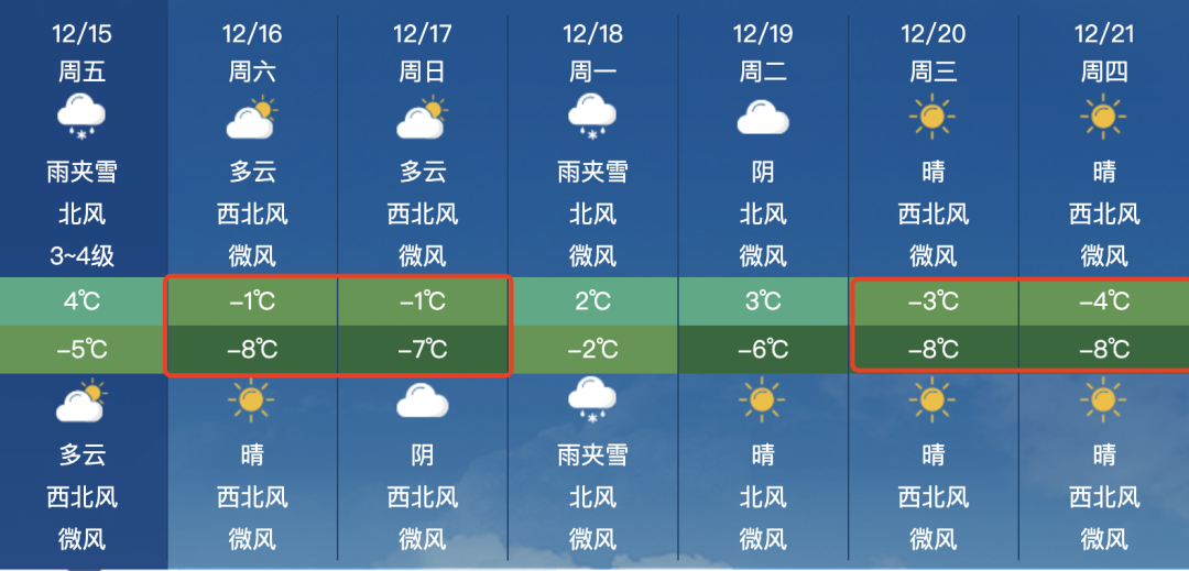 整个周末的最高气温仅-1℃!