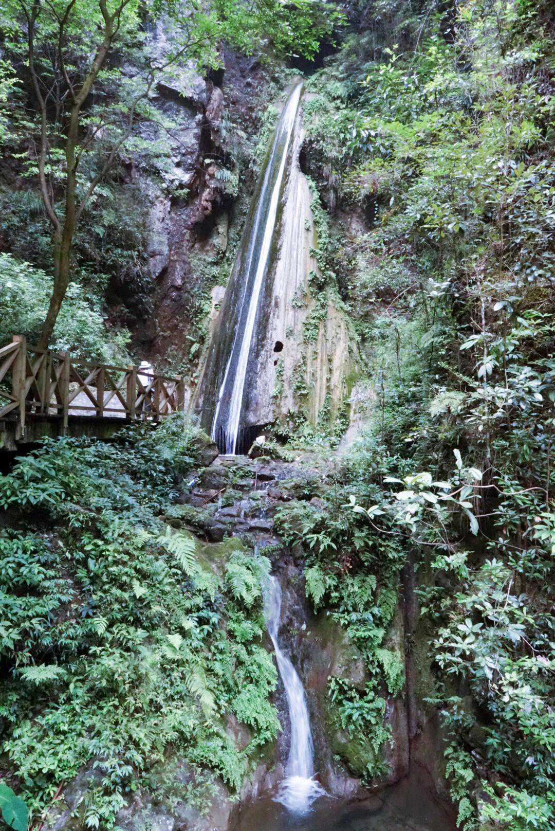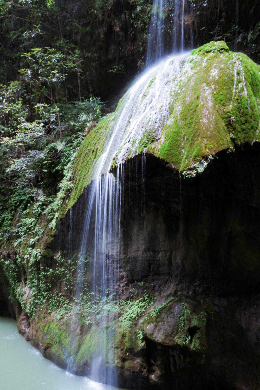 最特别的要数这条“金钟瀑布”了,它是非常特殊的钙华瀑布,瀑布水中含有大量钙质,随着水流里的钙质渐渐沉淀下来,形成了钙化岩体,而金钟瀑布水流从上流下来,久而久之就形成了“钟”状岩石,亲眼看见会感觉非常特别,因为瀑布看起来不像是流下来的,反倒像是慢动作播放,一点一点挪下来的。