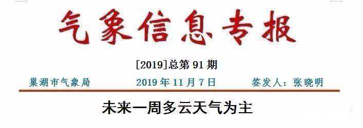 再给大家预报一下巢湖未来几天的天气情况:未来一周巢湖市多云天气为主,气温起伏不大,最高气温19~22℃,最低气温10~12℃。