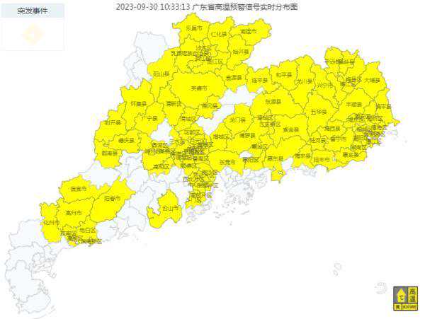 9月最后一天,承蒙高温不离不弃,广东今早9时最高气温已飙升至31.2℃(珠海),除了新丰、连山低于25℃外,其他市县不负“热”爱,气温一路攀升。