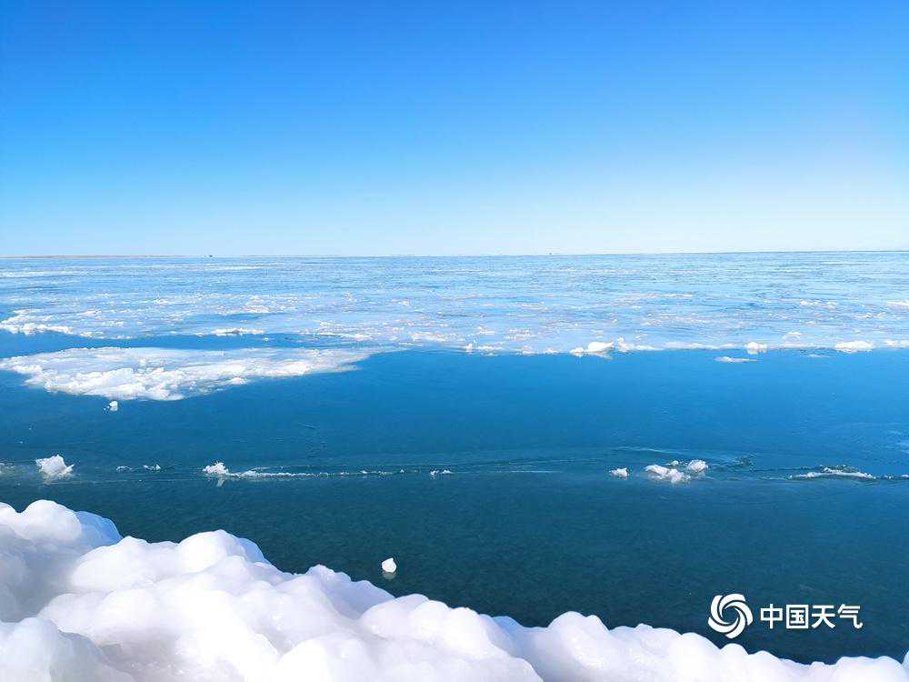 1月1日,青海省天气寒冷,青海湖开始结冰,湖天一色,美不胜收。(图/石明章)