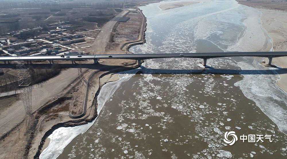 1月5日,航拍黄河宁夏段平罗县境内流凌漂浮。(图/赵亮)