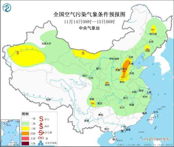 11月13日至15日,京津冀及周边区域中南部等地大气扩散条件逐渐转差,将有轻至中度霾。16日白天,受冷空气影响,霾天气自北向南减弱消散。