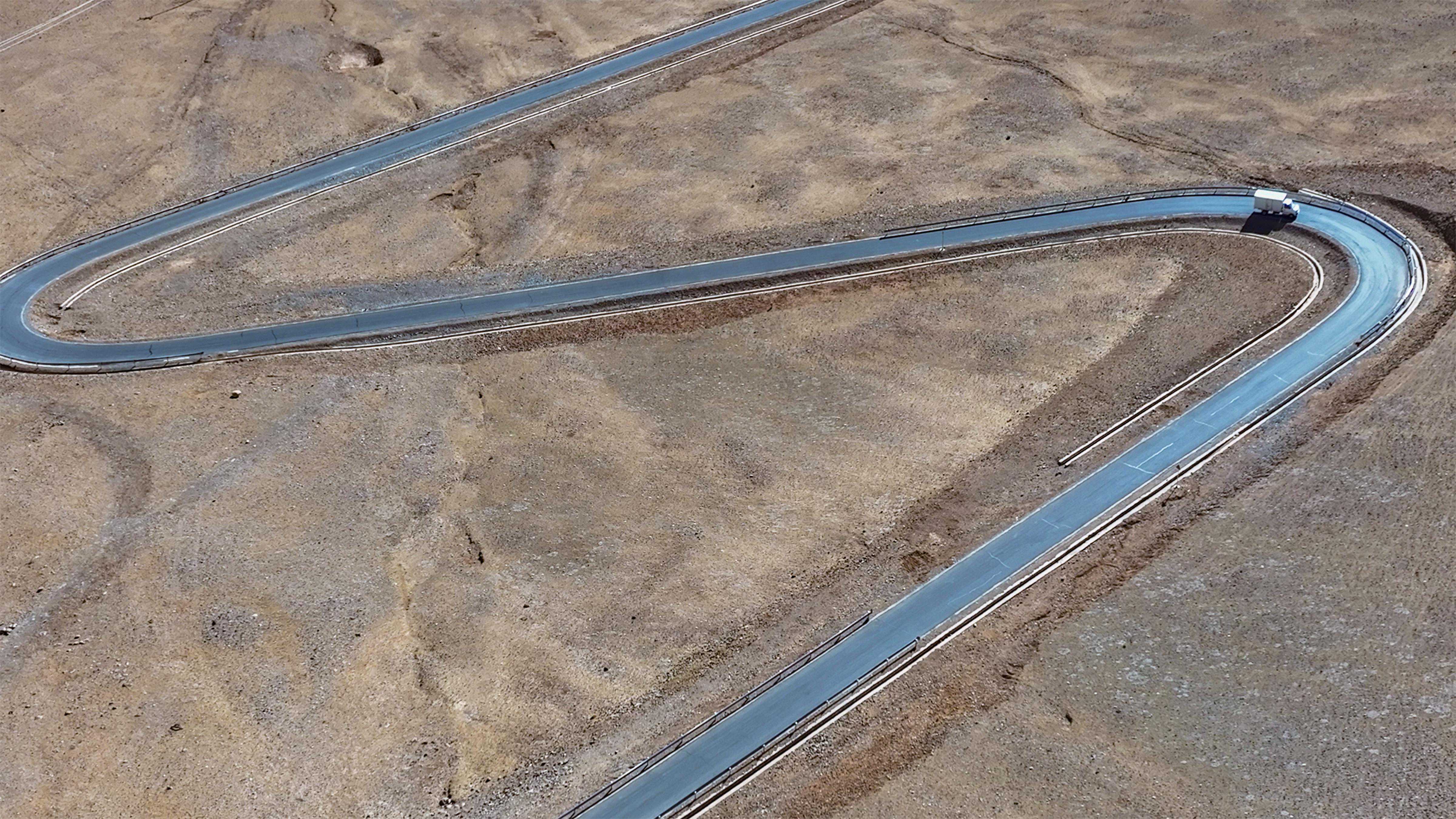 申扎县供销合作社为马跃乡贝嘎四村偏远乡镇果蔬配送试点项目直销点配送新鲜果蔬的货车,行驶在盘山公路上,这个村距离申扎县城150公里(无人机照片,1月5日摄)。新华社记者旦增尼玛曲珠摄