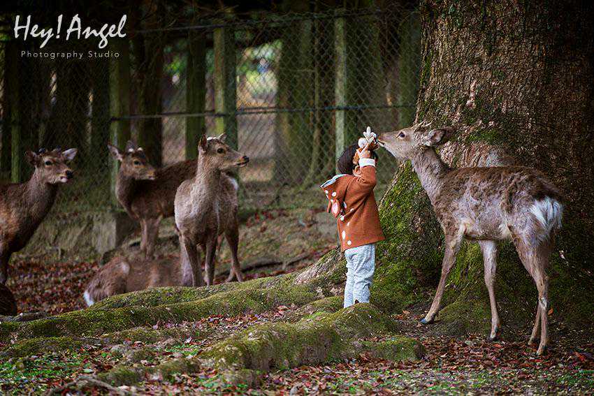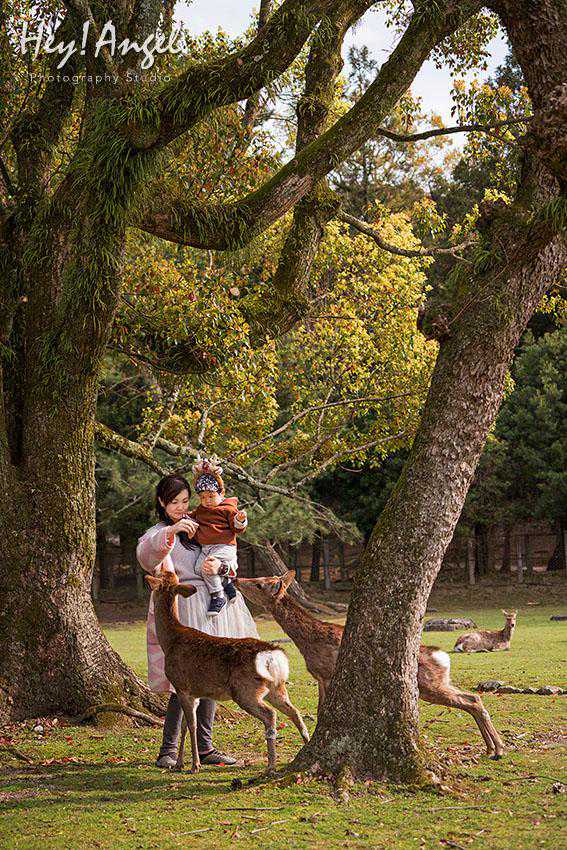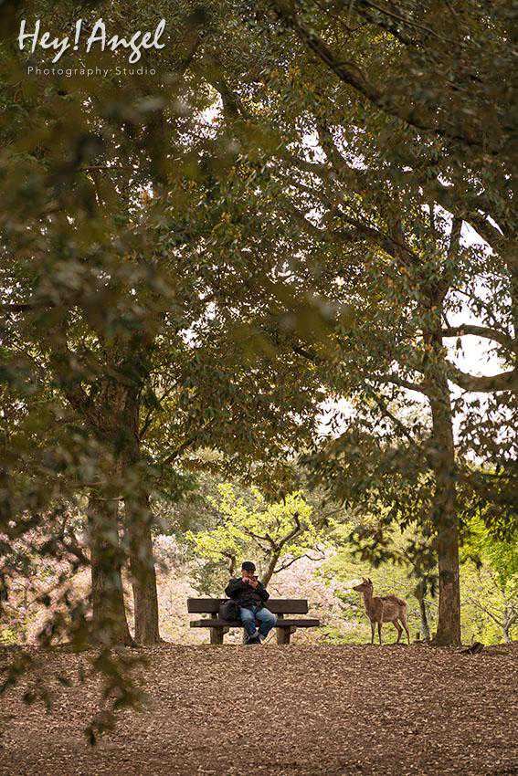 奈良公园里的绿化非常赞,但是纵横交错的树干在拍摄大场景的时候极易造成干扰,超广角的景深较深,类似头顶长树干的忌讳发生几率高,用长焦镜头即能避开多余的元素又能虚化背景,即便背景不完美也能有效控制。