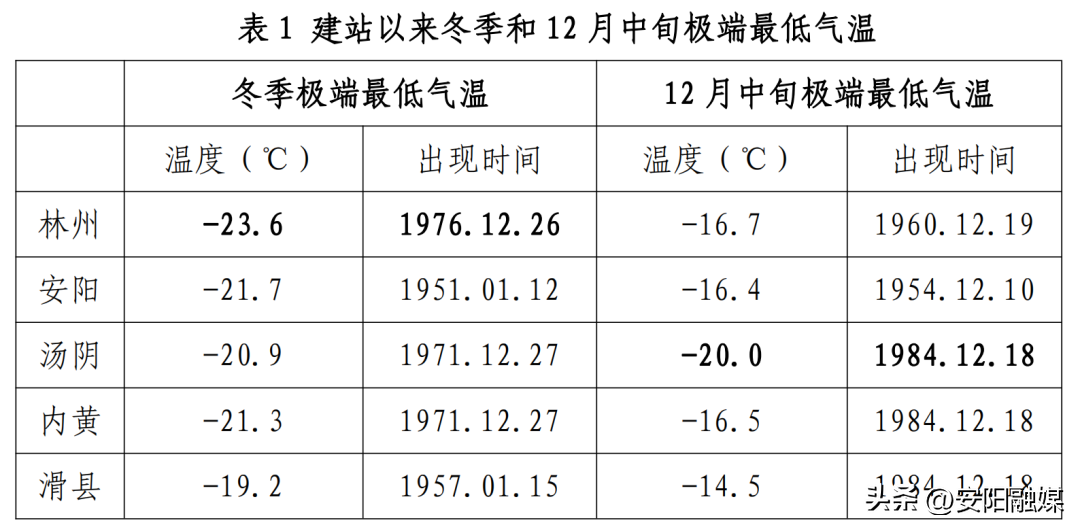 根据气候资料统计,建站以来我市冬季极端最低气温在-23.6℃至-19.2℃之间;12月中旬极端最低气温在-20℃至-14.5℃之间。
