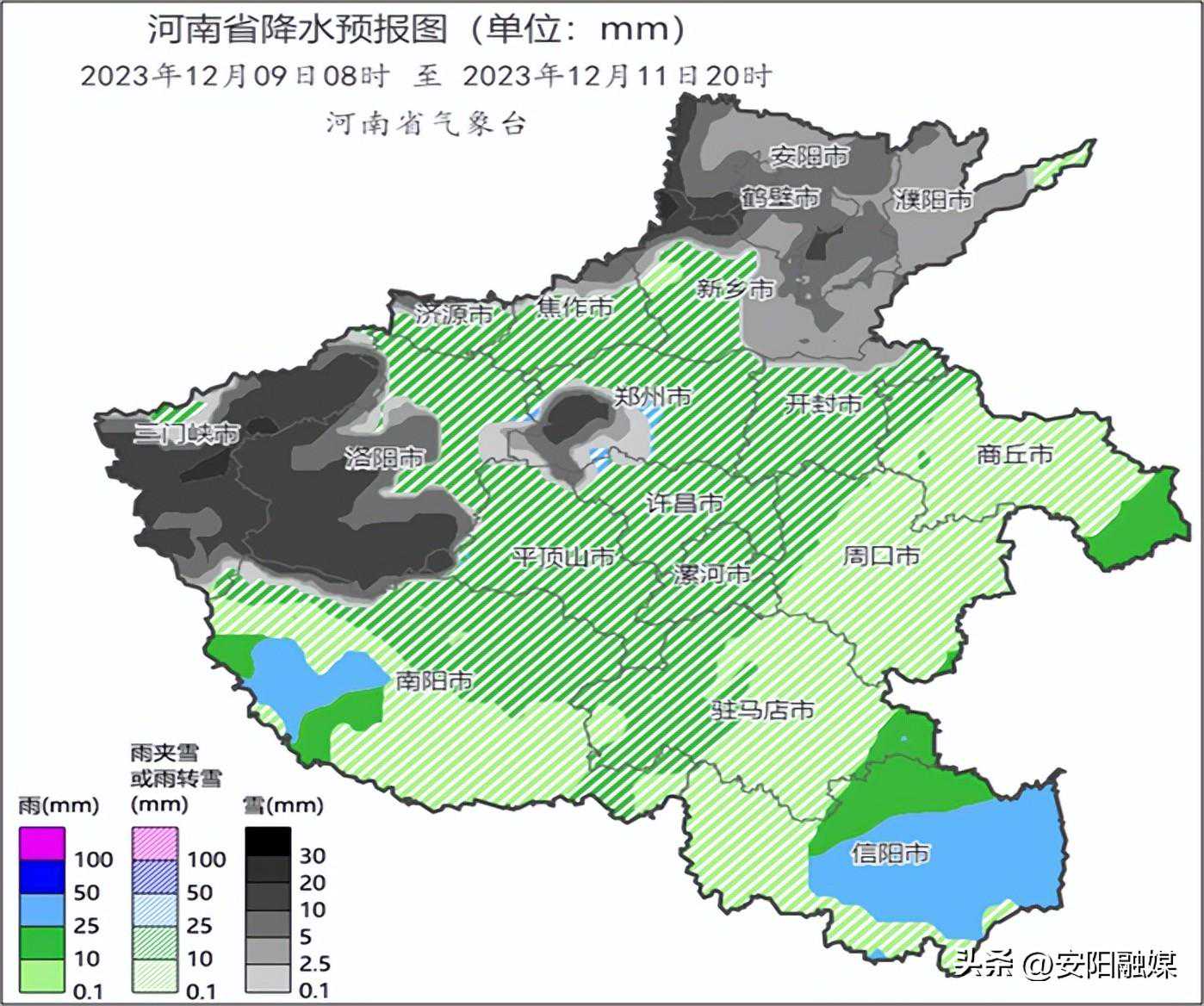 12月9日夜里至11日我市雨夹雪转中到大雪,西部山区暴雪,累计降水量10毫米至15毫米,并伴有4级至5级偏北风,阵风7级左右,最高气温较前期下降20℃左右。