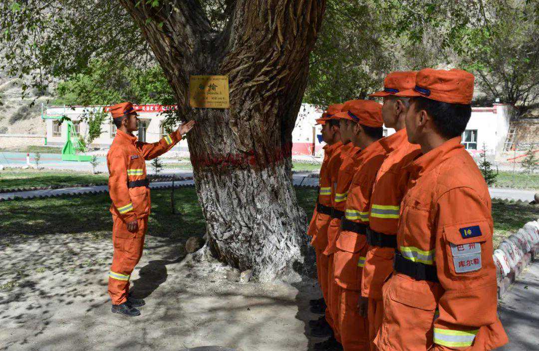 巴仑台,又称榆树的故乡。在巴仑台黄庙景区,年龄最大的一颗古榆树迄今已1000余岁,此外还有树龄500年左右的古榆树十数株。古树名木既是一种珍奇的森林资源,又是记录环境变迁、社会演变的重要见证,更是研究自然科学领域内诸多学科的活标本、活记录。作为社会科学史料研究的活文物,保护好古树生长对于创建绿色家园至关重要。巴伦台榆树大多生长于山谷、丘陵等地方。它喜好阳光,不惧寒冷干旱,根系发达,生长极其旺盛。为增强当地群众的森林树木保护意识,切实增强防火宣传工作的针对性和实效性,新疆森林消防指战员走进黄庙景区,在古榆树聚集区域采取播放防火常识录音、讲解森林防火法规制度、发放防火宣传手册、悬挂张贴横幅标语、组织体验灭火装备等方式深入开展森林防火科普宣传。进一步唤醒当地群众和来往游客对古树名木的保护意识,有效扩大防火宣传覆盖面和影响力,确保珍稀森林资源永续传承、造福万代。