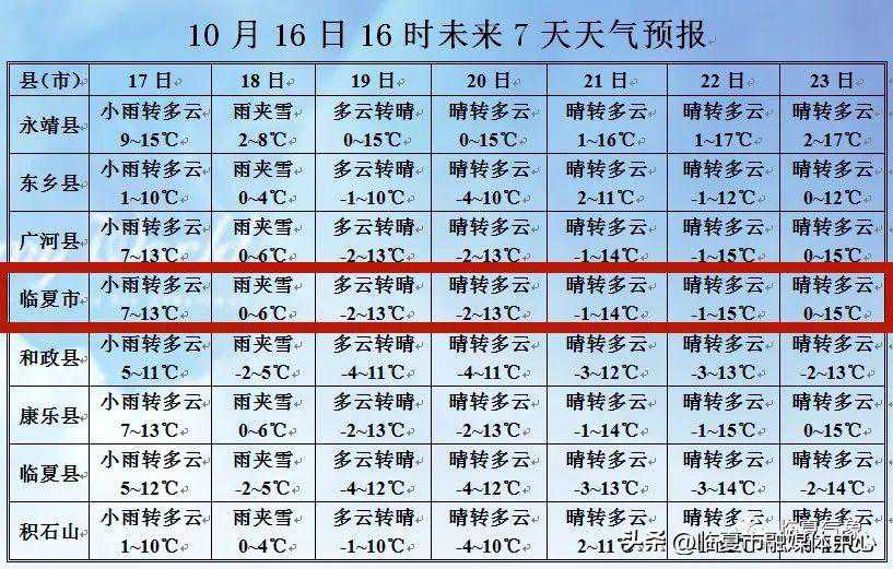 【临夏市未来七天天气预报】