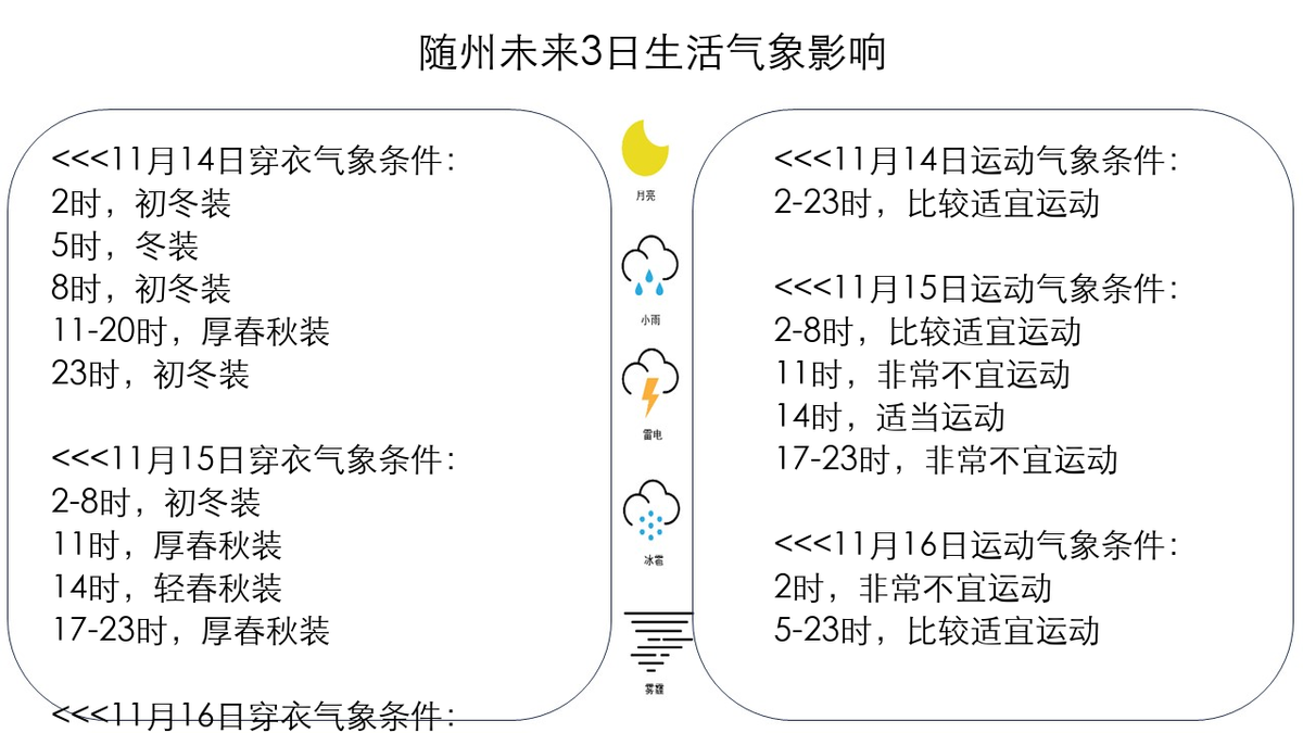 随州未来3日有2天降雨;1.3毫米降水,持续至少1小时;气温先降后升,最高温15.1℃,最低温-0.3℃;未来3日有1天大风
