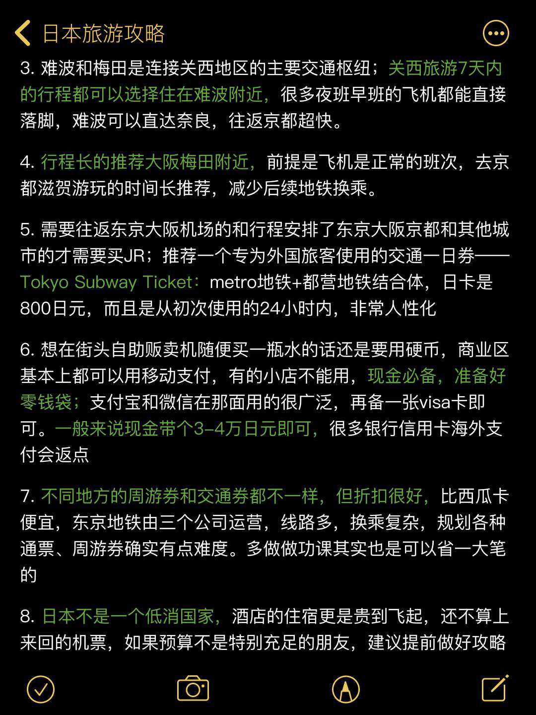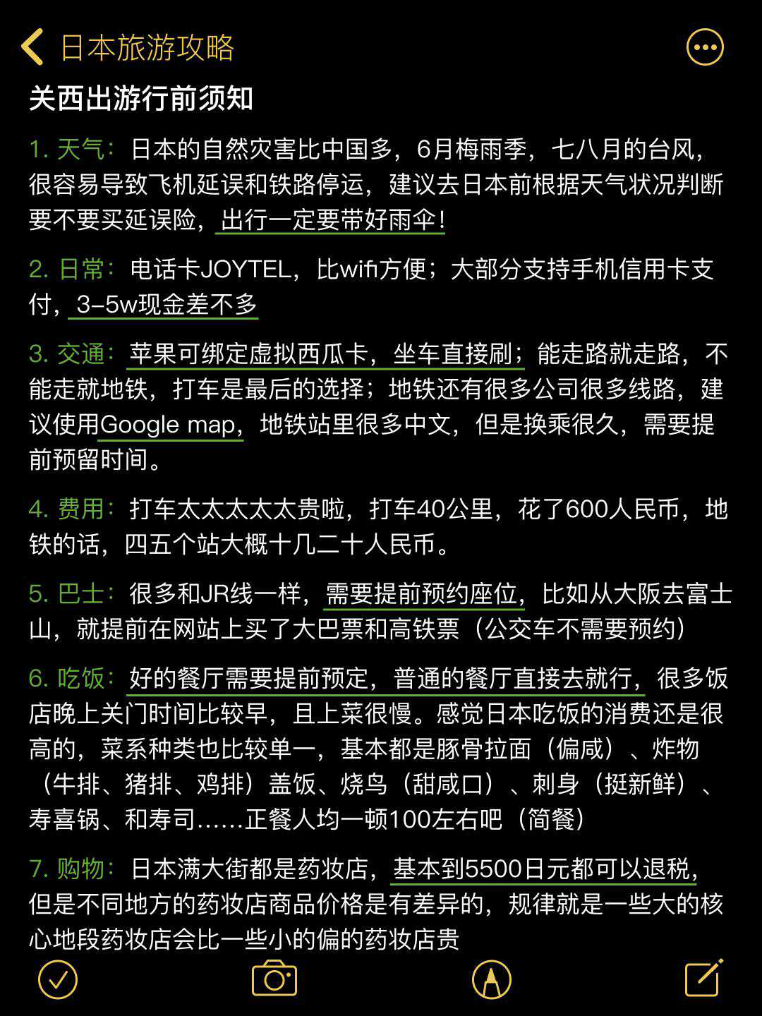 日常:推荐使用电话卡JOYTEL,比起Wi-Fi更方便。大部分地方支持使用手机支付,建议携带3-5万日元现金。