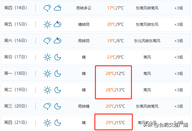 13日(周三):沿淮淮北地区阴天,淮河以南多云。