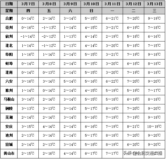 7日(周四):江北多云有时阴天,东部局部地区有小雨;江南多云到晴天。