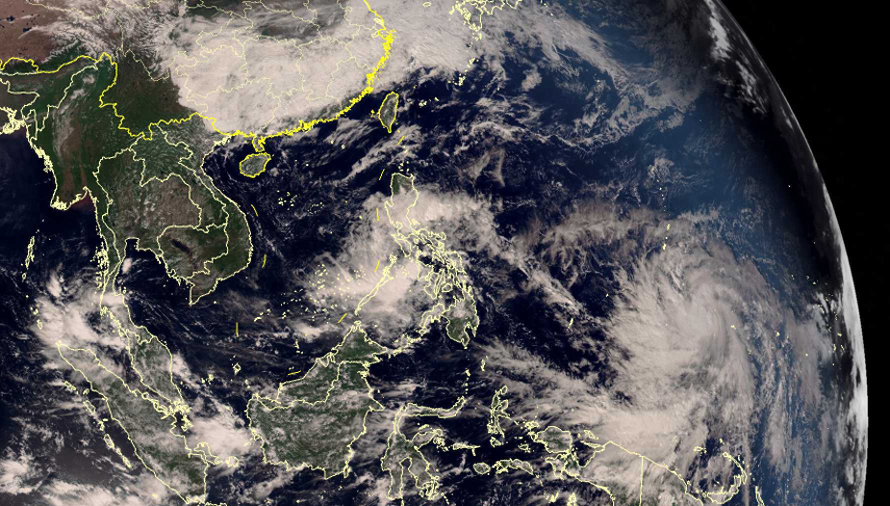 位于菲律宾群岛附近的是正在活动的热带低压,它或将发展成为今年第29号台风天兔。