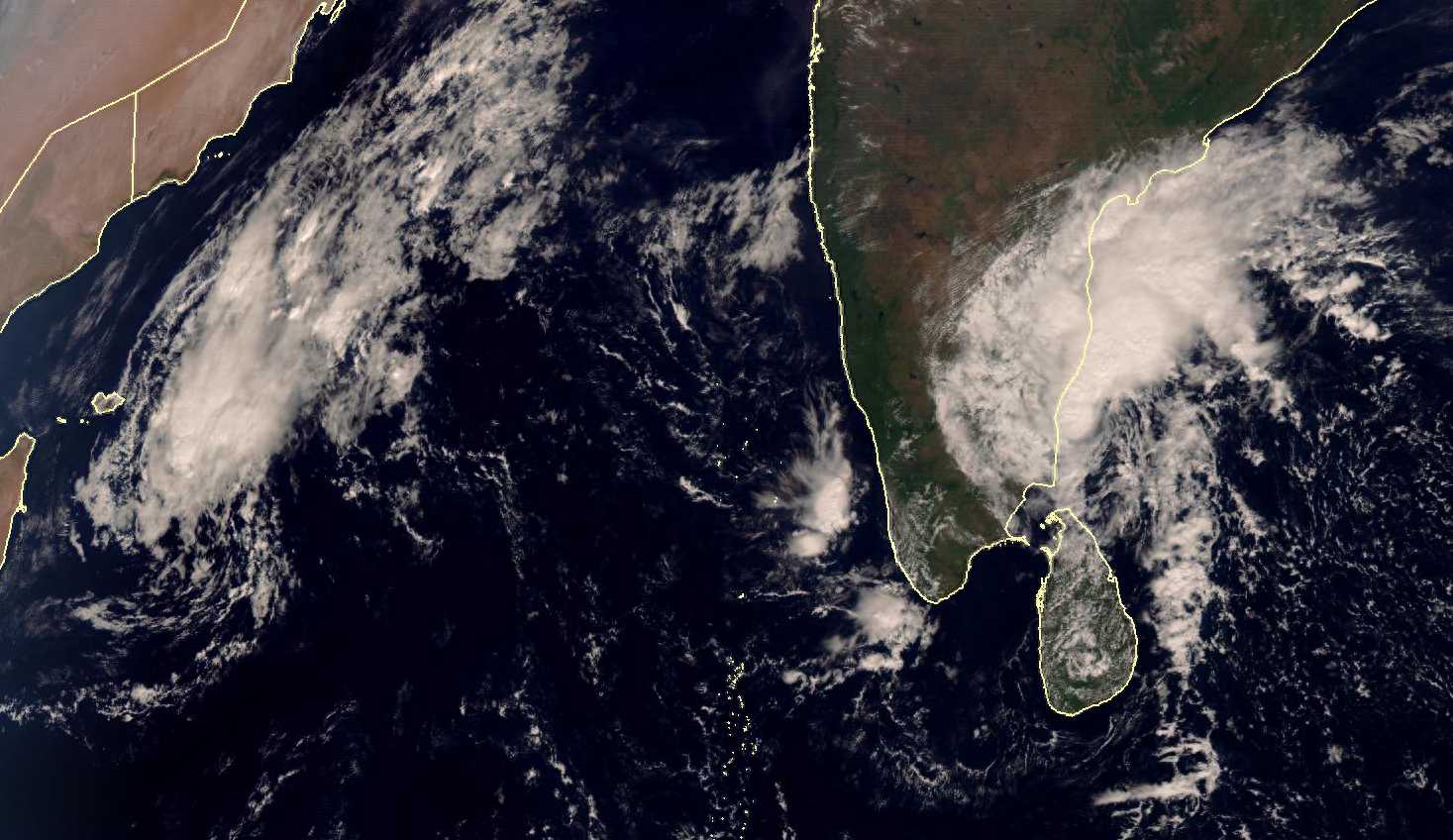其中,位于阿拉伯海上的是此前登陆印度的气旋风暴加扎,而印度附近的则是正在发展中的风暴胚胎。
