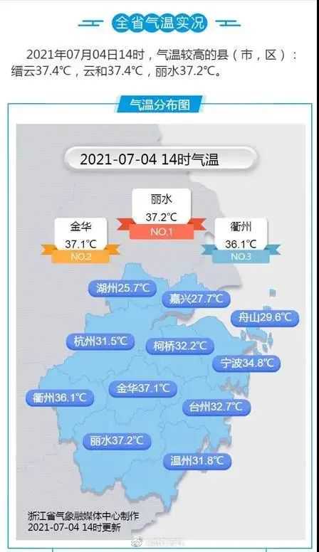 据丽水市气象台消息,昨天除龙泉、庆元、青田外,其他县市最高气温纷纷超过了35℃,最高丽水城区36.2℃,然而昨天只是炎炎夏日的开篇。