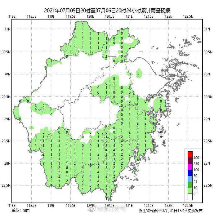 明天后天:东南沿海地区晴转多云,明天夜里到后天多云到阴部分有阵雨;其它地区晴到多云,每天午后有分散性雷阵雨。其中今天后半夜到明天早晨浙北和沿海地区局部有雾。