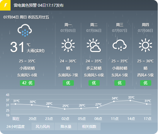 据市气象台消息,目前来看,下周我市的天气如复制粘贴一般,在副热带高压强势控制下,几乎重复着多云搭配午后雷阵雨的天气,除了雷阵雨落区的“局地性”,天气几乎没有多大的变化。