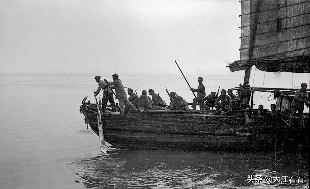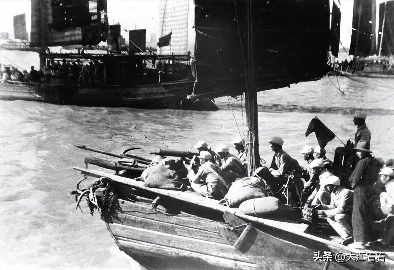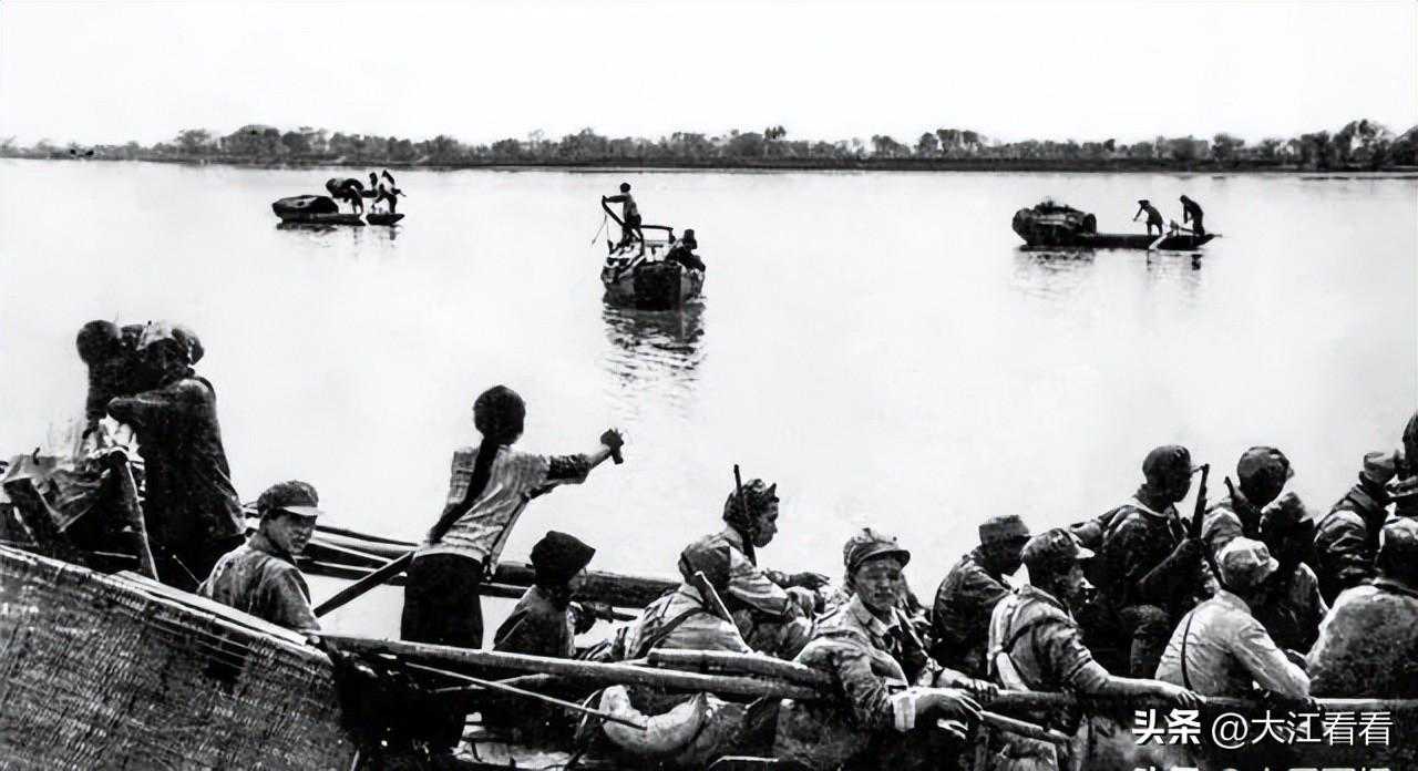 三个突击集团在千里江面上,采用宽正面的同时强渡和有重点的多路突击的战法强渡长江,完成战役第一阶段。