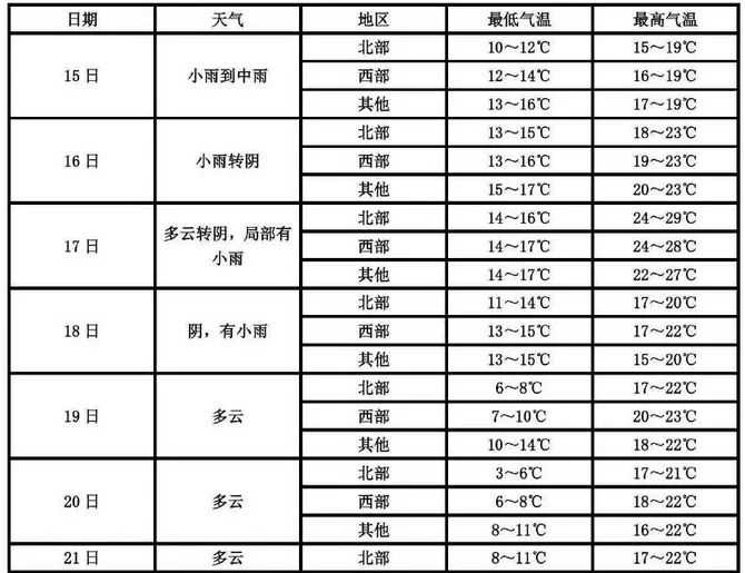 其中15日部分有中雨