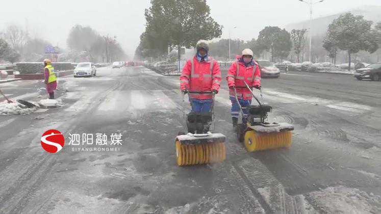 泗阳环卫工人朱成俊:我们今天早上八点就出来开始扫雪的,机械化与人工结合效率比较高,速度也比较快。