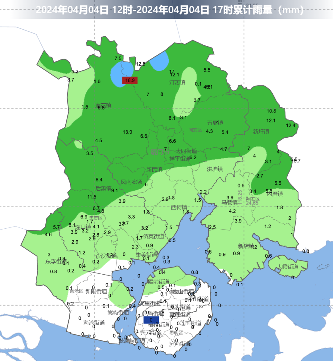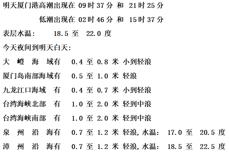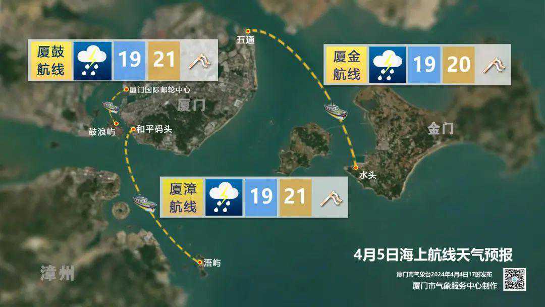 【和平码头-浯屿航线气象条件】:风向风速:东北风4~5级、阵风6级,能见度:1.6-3.8km,气温:19-21℃