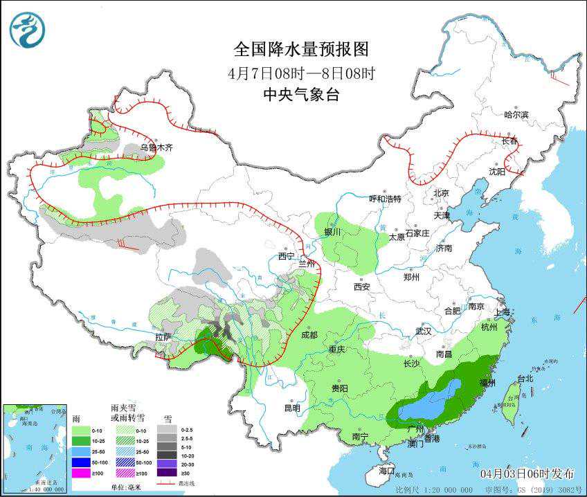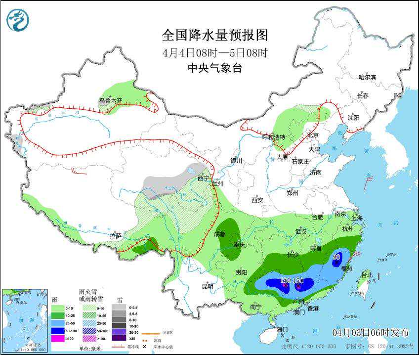 根据气象部门的最新预报,明后天4月4日和4月5日,新一轮的雨雪天气:降雪主要分布在我国西部地区以及东北地区的北部,西藏东北部、黑龙江西北部、内蒙古东北部、新疆北疆东部和沿天山地区、西藏北部、青海东部和南部、甘肃南部等地有小雪或雨夹雪。