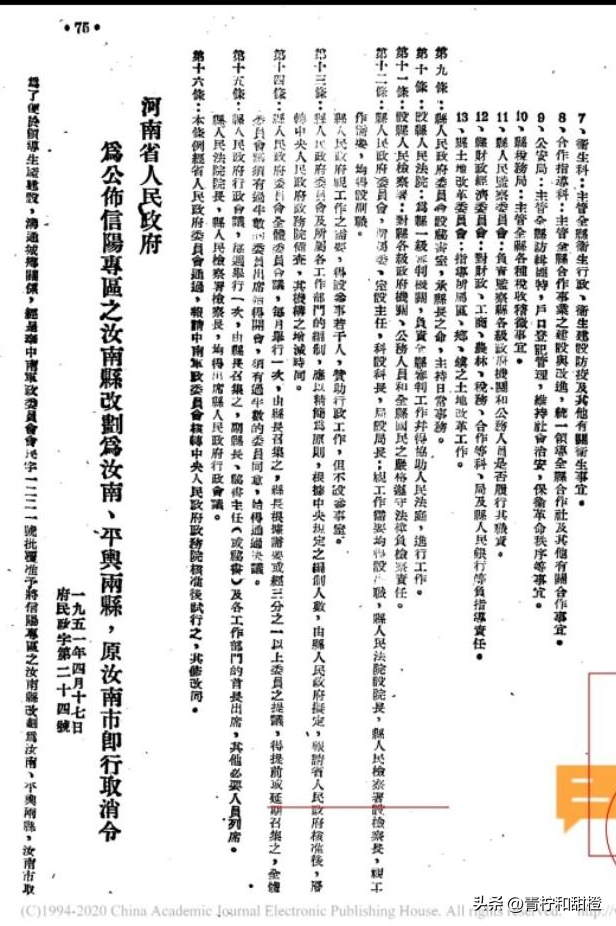 三、回光返照的汝南市1949年4月,河南全境解放,次月,中原临时人民政府决定成立河南省人民政府,下辖民国河南省黄河以南部分。原清代汝宁府辖区改为河南省信阳专区,专区驻地信阳市。