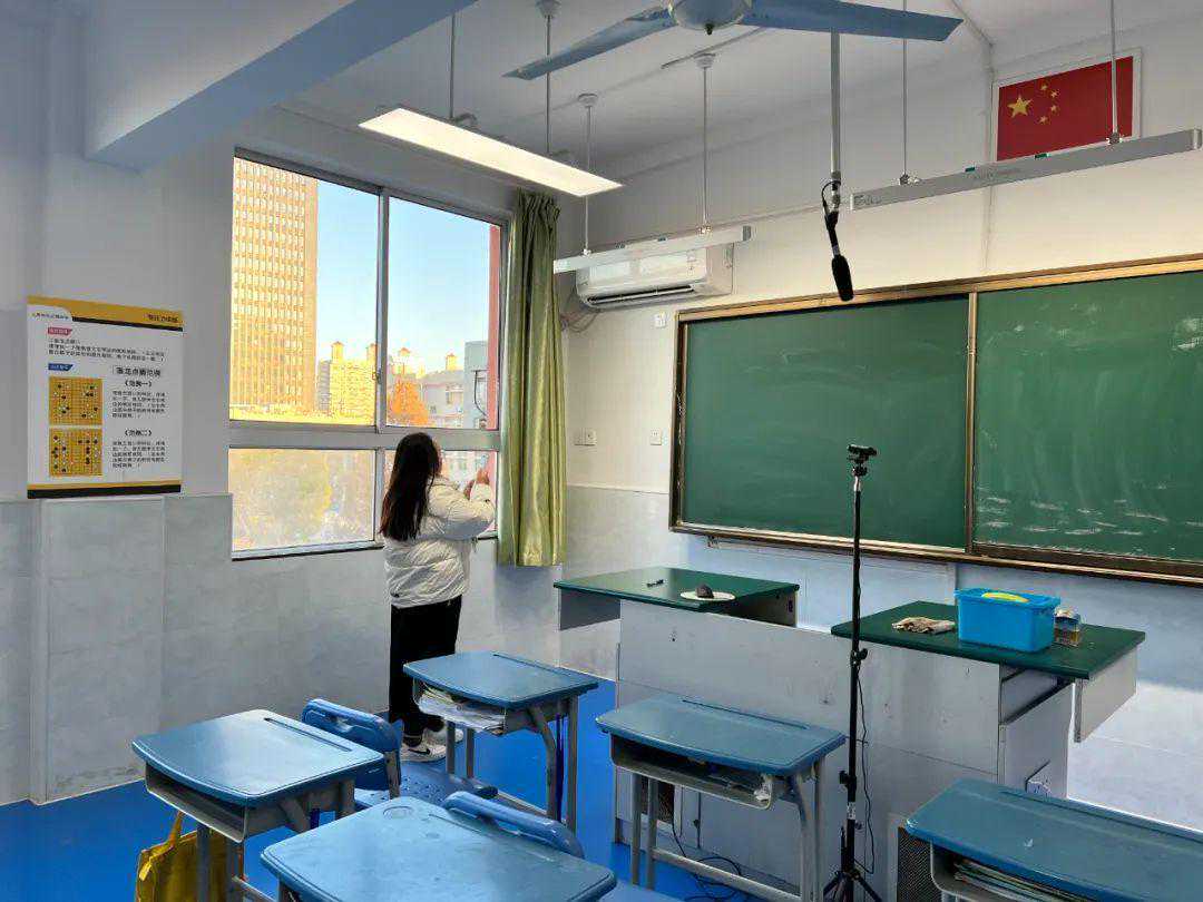 学校的班主任们早早来到学校,打开教室空调,让学生在走进走廊也能感受到教室里温暖的气息。