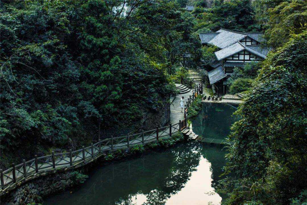 雁荡山净名禅悦,温柔婉约;山石树木,青松绿苔;曲径通幽处,处处匠心独运,高树矮丛交相辉映,清幽而宁静。禅院的禅意之处在于它的小巧而精致,孤寂而玄妙,抽象而深邃,背靠着林木葱茏,戴翠披绿的奇峰异石,佳景天成。这座宋式小院,以禅修、禅茶、素食等方式,让游客体验禅悦、放松心灵。