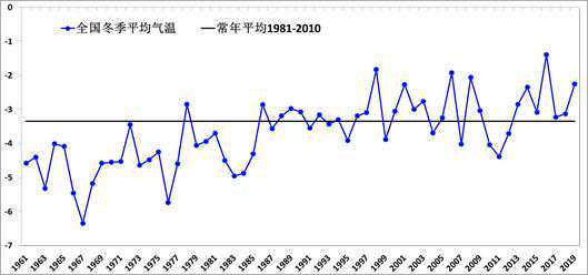 从过去几十年全国冬季平均气温的历史序列来看,我国整体呈增暖趋势,并且20世纪80年代以来,多数冬季气温都较常年同期偏高。在近十年以及2010年、2011年、2012年冬季都比常年同期明显偏冷,其中最冷的是2011年冬季;2017年和2018年冬季全国平均气温基本接近常年同期,这两年我国北方和南方地区都出现了较大范围气温较常年同期明显偏低的特征。