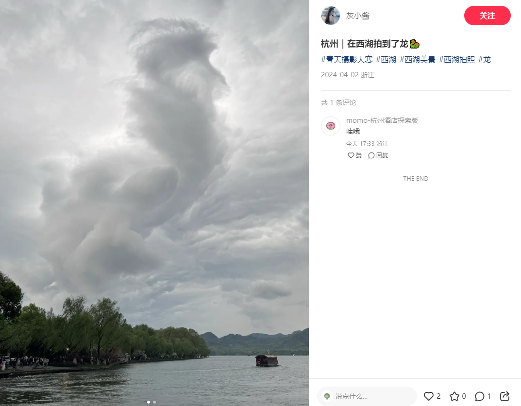 还有不少网友拍到杭州上空的乌云,居然形似一条龙,“龙王好像来西湖了”!