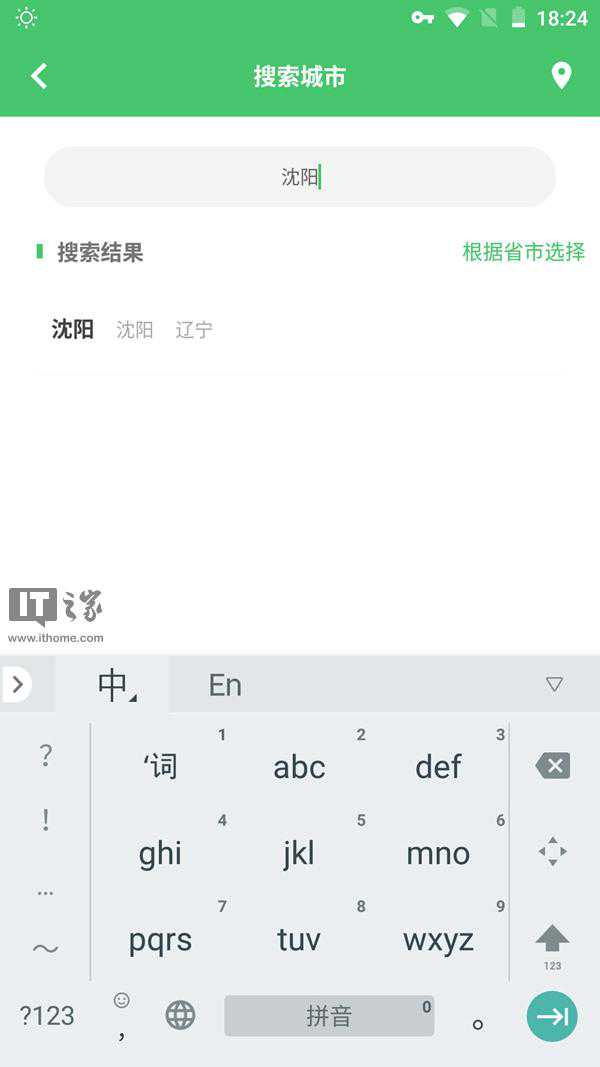 在添加城市时,你可以通过省市来进行选择,也可以在搜索框中进行精准搜索,值得注意的是,Pure天气不支持通过汉语拼音首字母简写以及汉语拼音字母全拼来搜索城市。