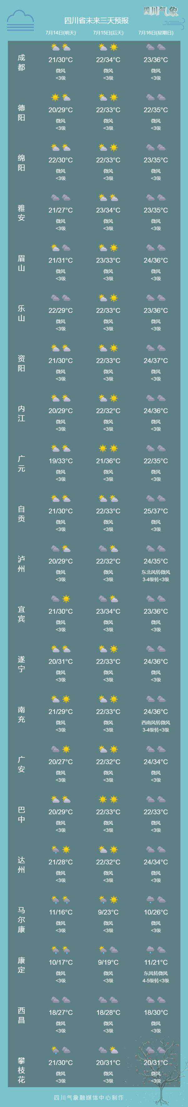 结合四川省气象台天气预报情况