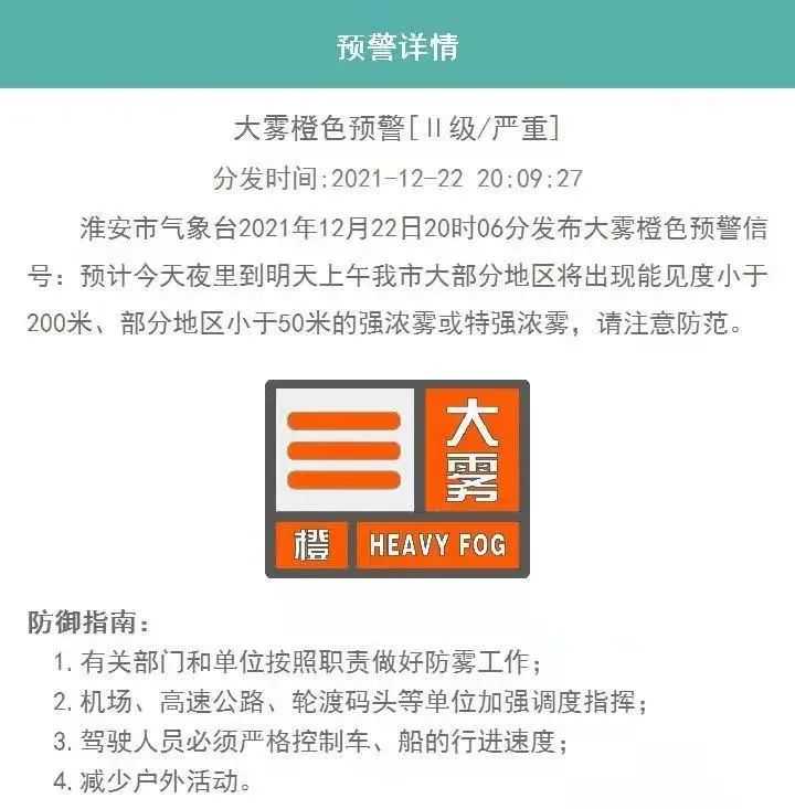 发布大雾橙色预警信号