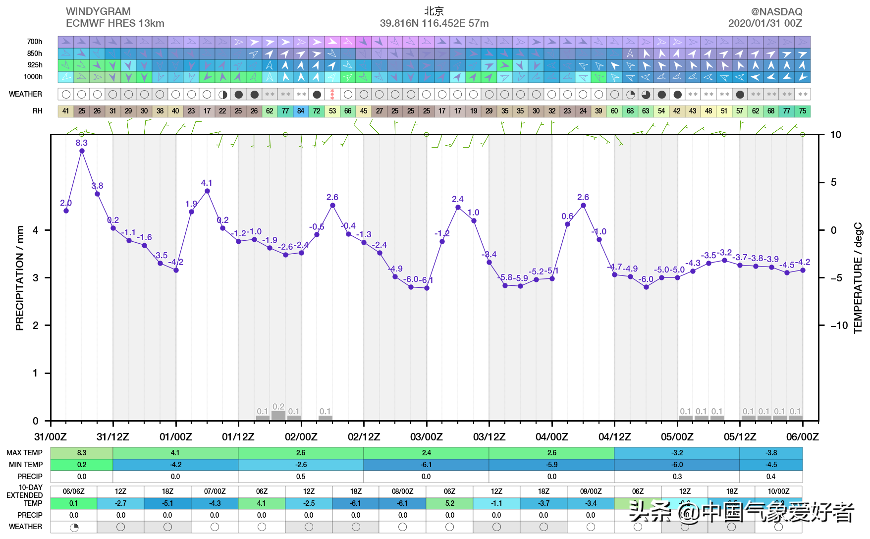 超级计算机的预测也和中央气象台的预测吻合,其认为在2月1日-2月2日,北上的暖湿水汽将被增强的冷空气冻成雪花,并落在华北平原上,京津冀将普遍出现降雪,局地降雪还可能会比较强。而从超级计算机的降水分析上看,其认为北京在2月1日-2月2日期间可能会出现降雪,但总降雪量可能就只有0.5毫米左右,可能仅为小雪级别。