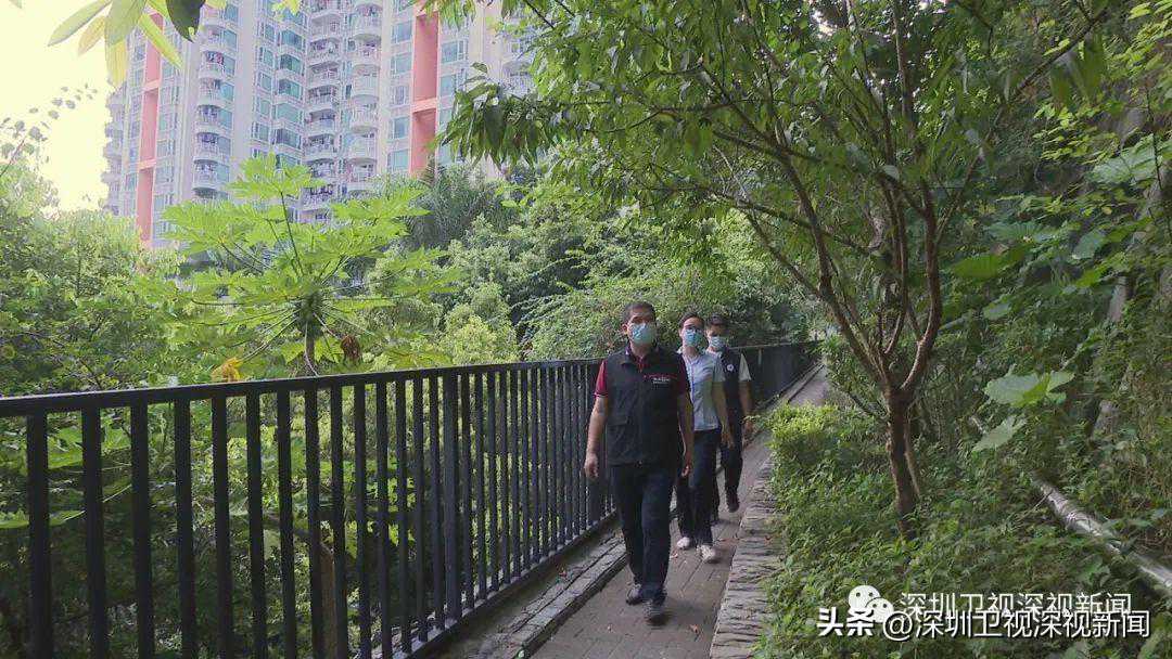 在罗湖区碧岭华庭小区北西侧边坡,社区工作站的工作人员正在和物业管理处负责人进行安全隐患排查。工作人员告诉记者,社区旁有大量山体边坡,目前已部署应急处置工作,还通过微信群的方式,建立与居民实时沟通渠道,及时发布台风相关消息。