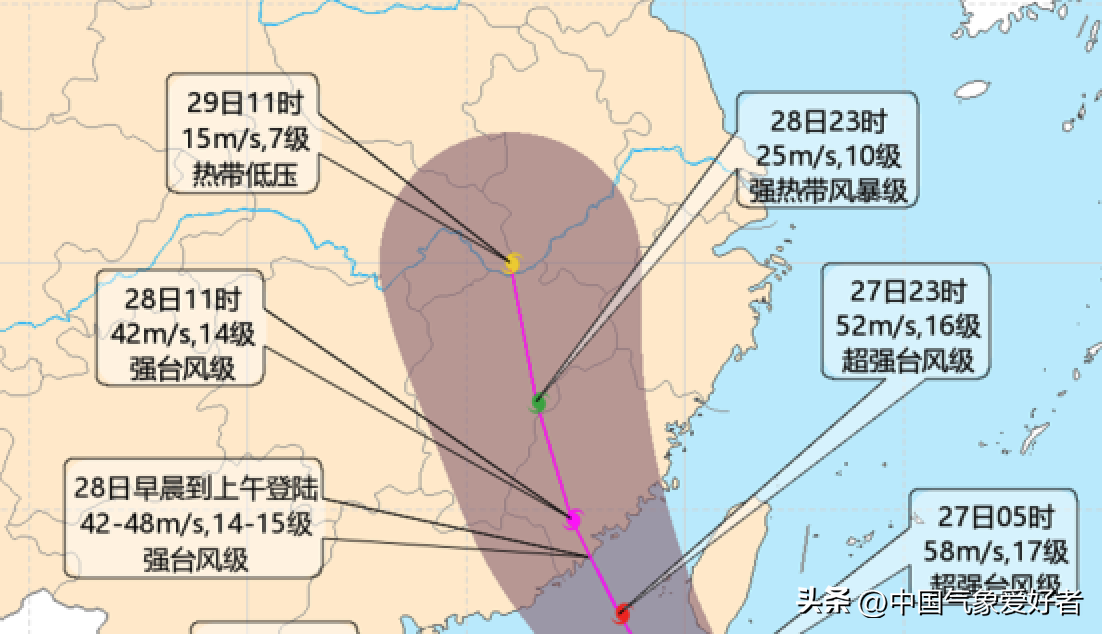 三、或影响8省目前,在中央气象台的预报上看,台风杜苏芮登陆后将持续深入,除了福建广东外,还可能深入江西,北上来到湖北安徽一线。