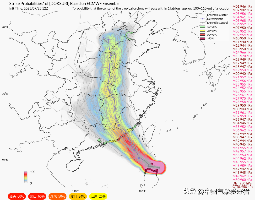 需要注意的是,杜苏芮在巴士海峡紧缩了内核,台风眼变小,在登陆前一路都是28-30度的高海温,高空流出还在打开,登陆前会维持强度,甚至可能略有增强,登陆强度强台风打底,超强台风下限也有可能。比如已有超级计算机模拟认为,台风杜苏芮在7月28日凌晨非常接近福建沿海时,还可能有着相当清晰的风眼结构。