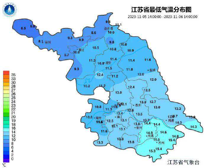 8日最低气温:10℃到11℃,