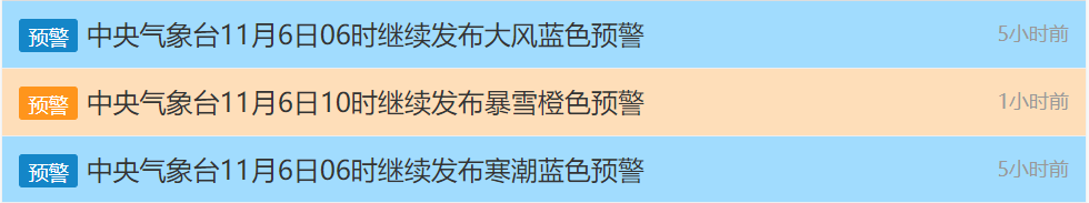 暴雪、寒潮和大风三大预警