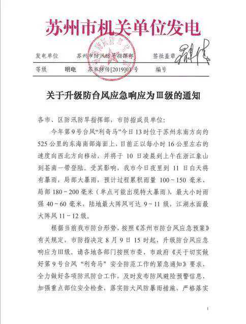 今年第9号台风“利奇马”今天16时位于苏州东南方向492公里的东海南部海面上,也就是北纬27.2度、东经122.4度,中心气压为920百帕,近中心最大风力17级(58米/秒)。