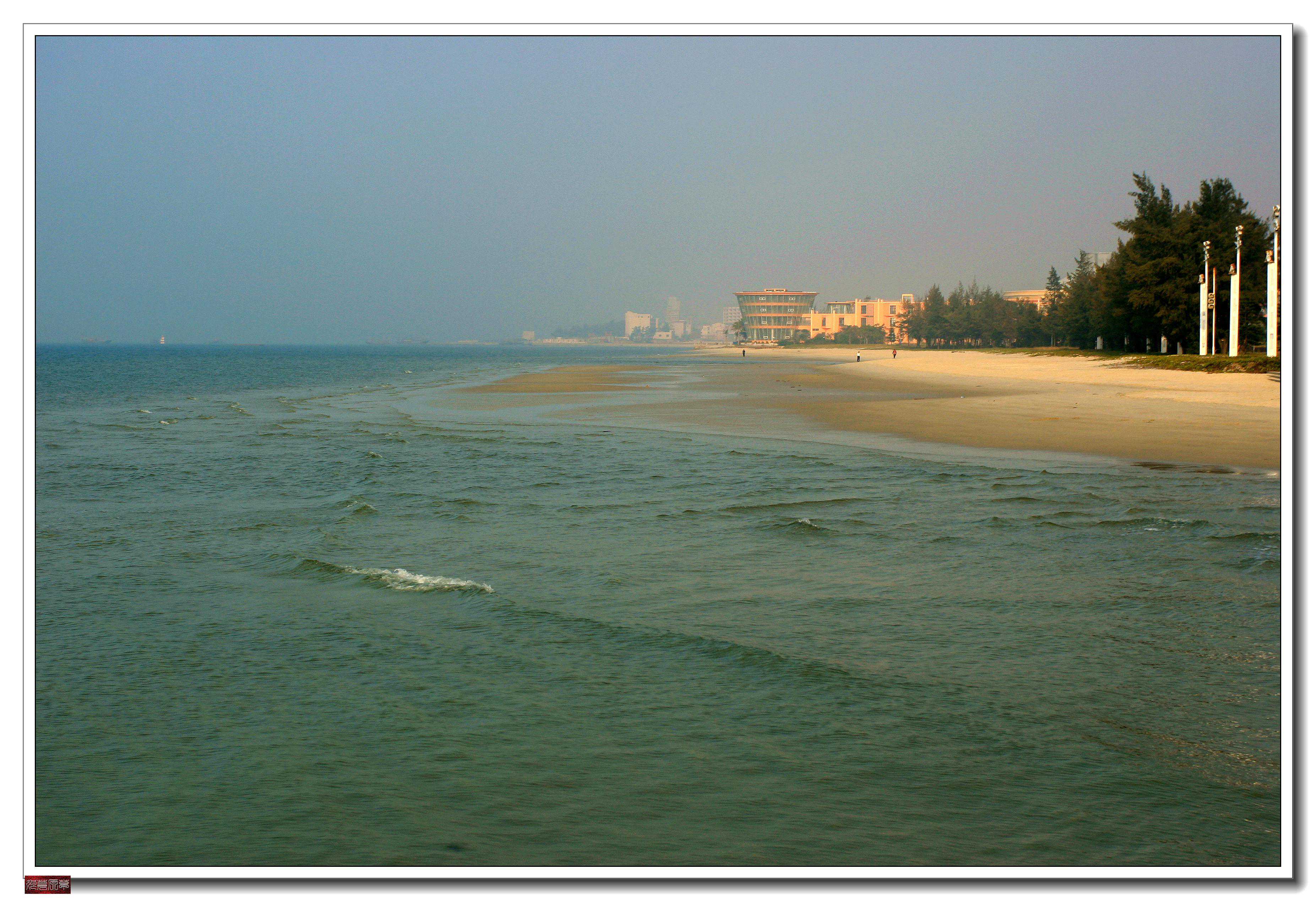 进入广西的第一站我们到了北海,主要是想看北海的银滩和骑楼。号称“天下第一滩”的银滩是北海主要旅游点,是国务院1992年10月4日批准建立的国家级旅游度假区。银滩位于北海市东南部海滨,东至大冠沙,西起侨港镇渔港,银滩东西绵延约24公里,银滩原来叫“白虎头”,因为从地图上看整个区域像一个张开嘴的大白虎。在广西则有“北有桂林山水,南有北海银滩”的说法,并以此而自豪。这里海域海水纯净,陆岸植被丰富,环境优雅宁静,空气格外清新。