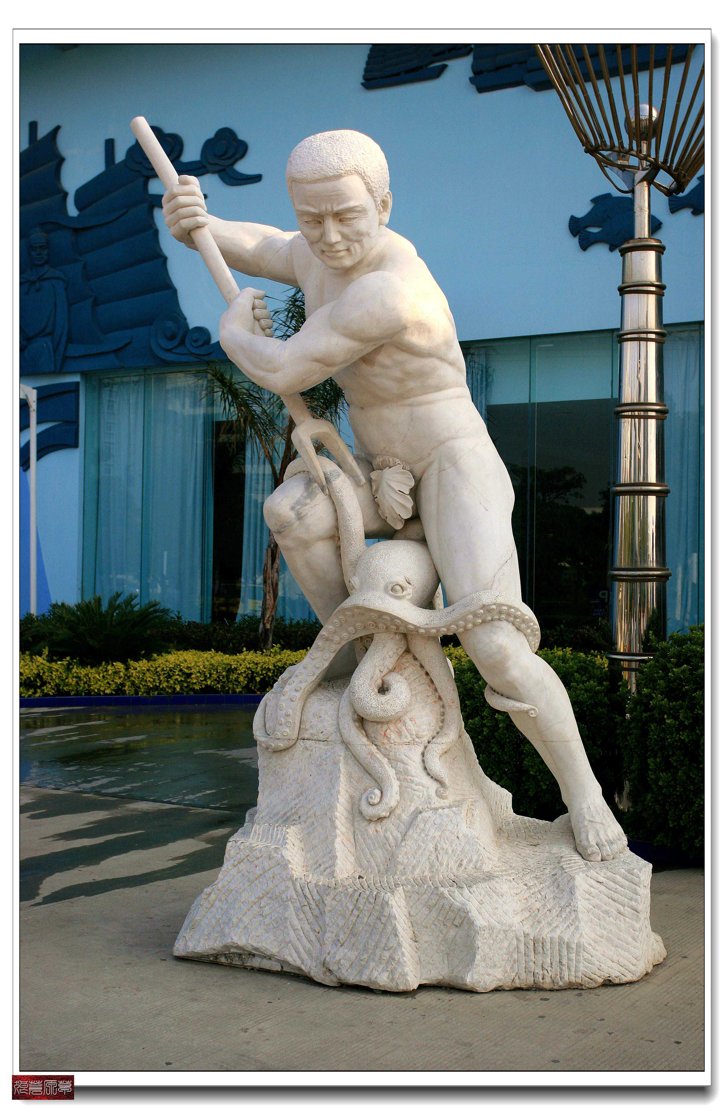 匆匆地欣赏完银滩的景色,前往北海老街去看骑楼,正好路过大名鼎鼎的“北海海洋之窗”,原本对这类人造的景观不太感兴趣,加之自己对海洋生物和海洋科学等缺乏知识,不太懂,同时也没有了解、探寻这类知识的欲望,所以最初这里并没有例入我们在北海的参观点。但既然路过不妨进去一观。说实话,这里还真是值得一看的,很是有趣,如果是带小孩子来北海,这里是必看之处。在这里可以满足孩子们的童真童趣并可以了解和增长很多海洋类科学知识。可惜由于我最初只是想随意走走看看,兴趣不大,所以拍的片子很少,内容也很少。