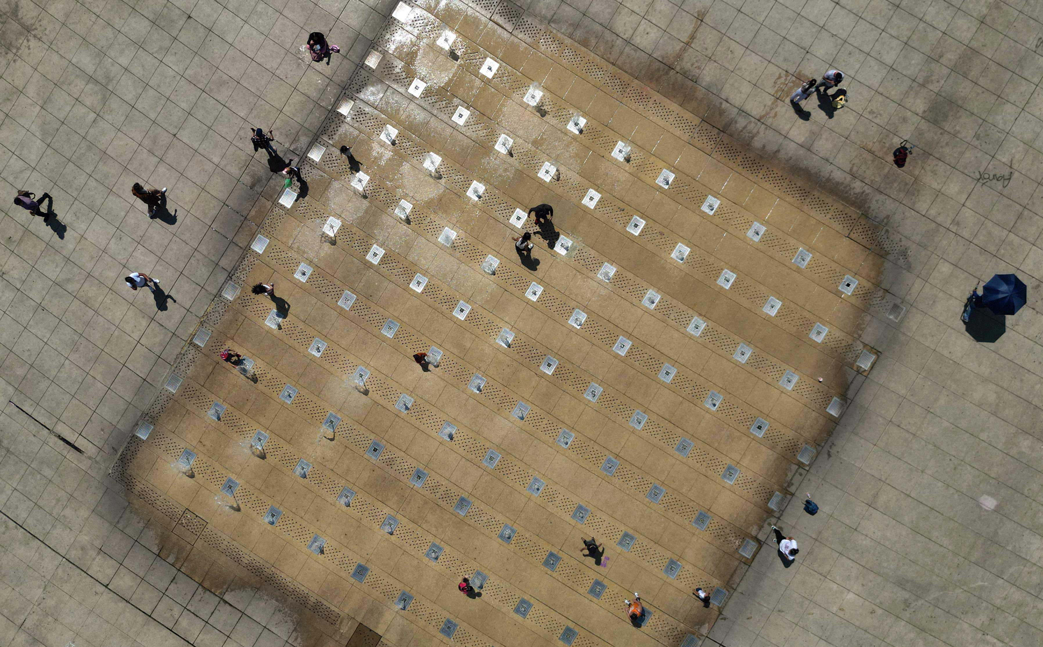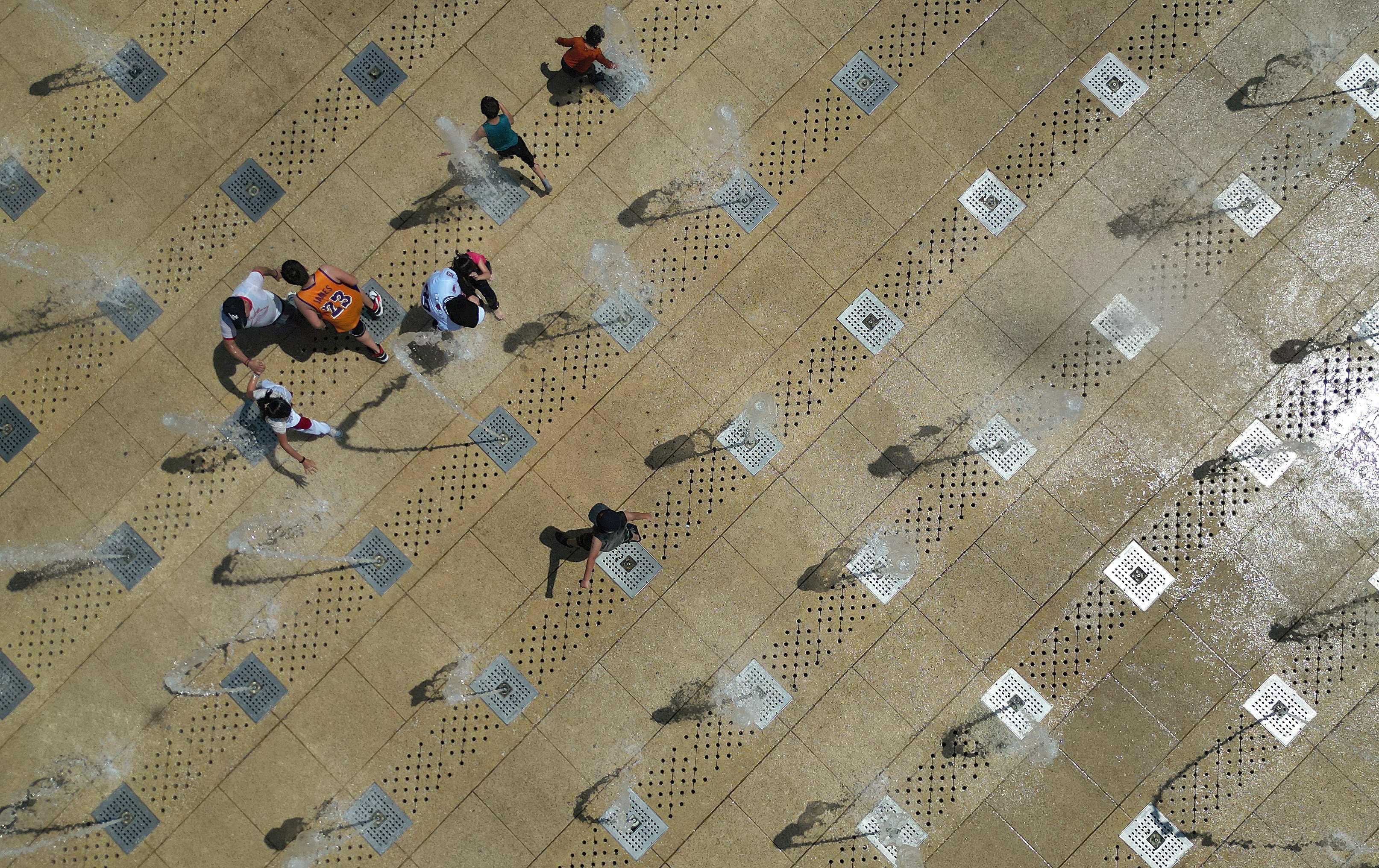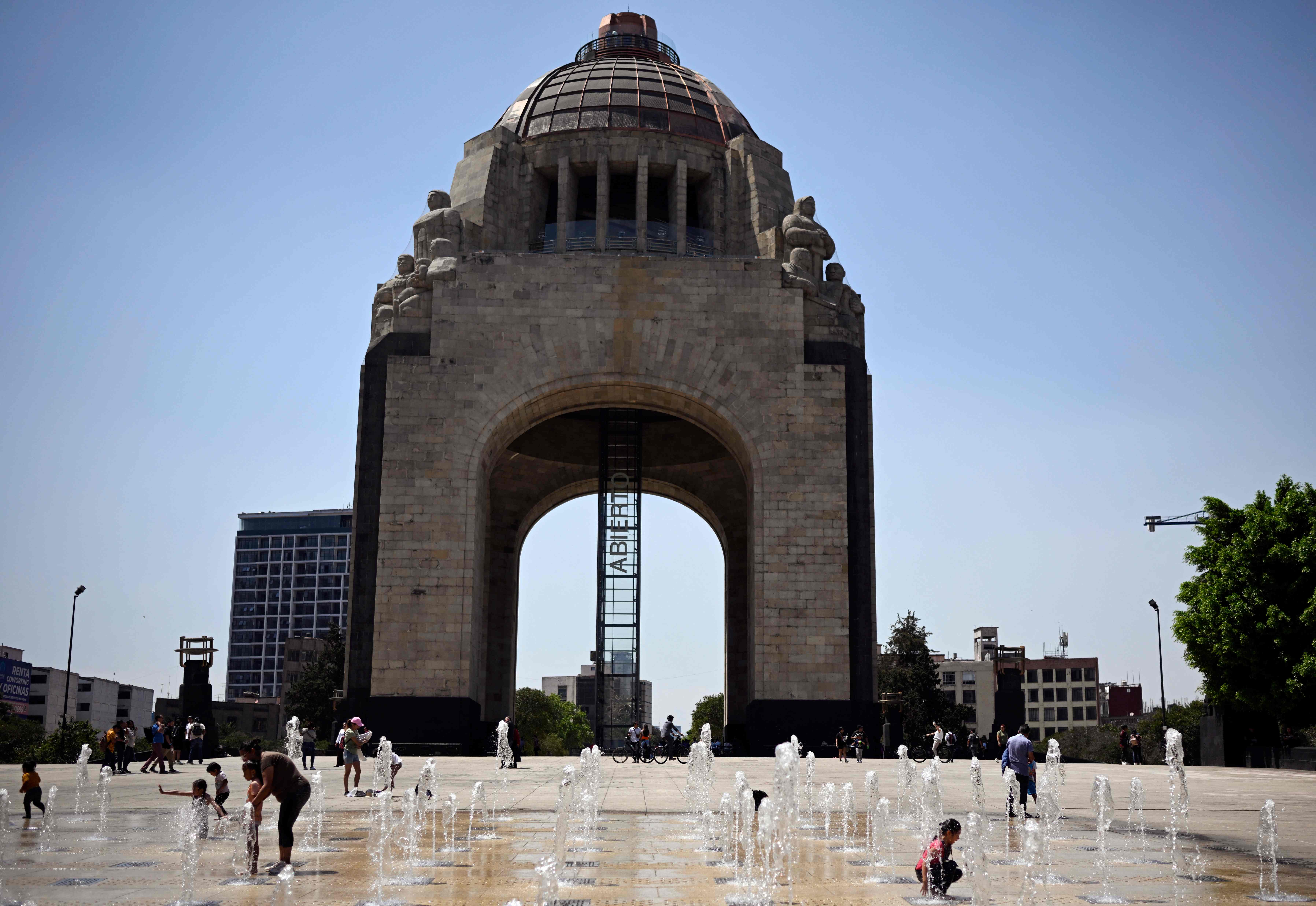 3月15日,人们在墨西哥首都墨西哥城一处喷泉戏水降温。新华社/法新